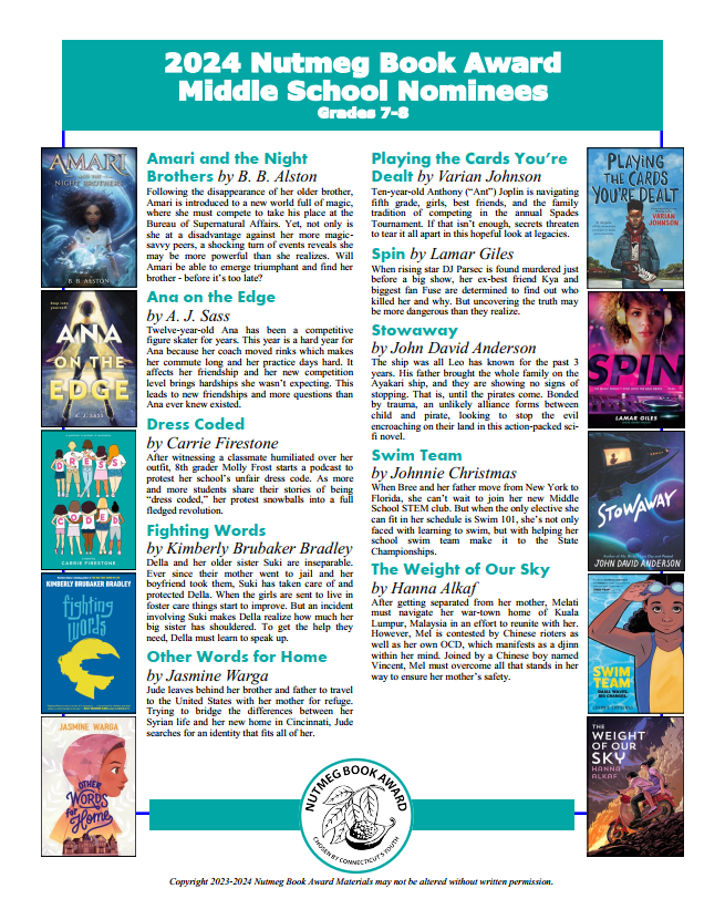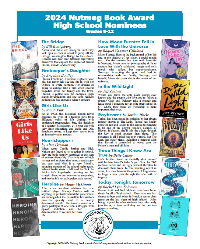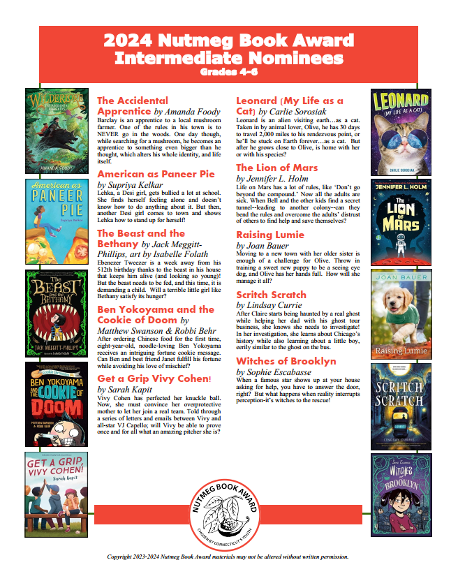 Students in grades 2-12 and any other interested readers are invited to read, enjoy, and vote each April for their favorite Nutmeg book.